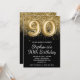 Sparkly Gold Glitter Black Balloon 90th Birthday Invitation