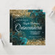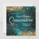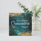Sparkly Gold Glitter Blue Teal Rose Quinceañera Invitation