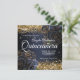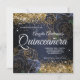 Sparkly Gold Glitter Navy Blue Rose Quinceañera Invitation