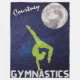 Girls gymnastics "Sparkly Gymnast in Space by the Moon" design with a gymnast doing a handstand pose. Name is optional.