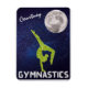 Girls gymnastics "Sparkly Gymnast in Space by the Moon" design with a gymnast doing a handstand pose. Name is optional.
