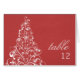 Simple yet very elegant Sparkly Holiday Tree Wedding Table Card in red featuring a swirly Christmas tree decorated with illuminated sparkling bulbs. This lovely wedding table number card is perfect for a Christmas or winter wedding. Customise with the appropriate table number(s). Click on the "Customise It" button for more personalisation options. NOTE: THIS IS DIGITAL ART (FLAT) DESIGN. DESIGN IS CREATED TO SIMULATE THE LOOK OF A LIGHTED CHRISTMAS TREE.