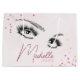 This bag represents a fusion of functionality and style, it’s a fully customisable product for the savvy online beauty shop offering top-tier lash extension products. The design is a lavish blend of glam and minimalist aesthetics, featuring a blush pink gradient background that exudes luxury. It features a confetti like, multicolor sparkly stars glitter, giving it a girly and festive touch. The central black illustrations of lash extensions emphasize the theme of beauty and elegance. Custom name and profession is elegantly scripted in burgundy purple, resonating with makeup artists, brow bar professionals, beauty salon owners, lash extension specialists and esthetitians. The gift bag has provisions for a custom QR code and personalised social media icons, offering a seamless blend of functionality and style. Glitter elements lend a subtle shimmer, enhancing the card's upscale, lash bar vibe, while keeping the overall look clean and uncluttered.