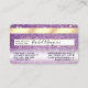 This is the perfect business card for a trendy, stylish, girly, and modern lash artist, makeup artist, nail technician, and many more professions. This design features a chic, glamourous, and pretty lilac purple glitter bokeh ombre background with gold accents designed in the cute, unique, and clever style of a credit card. It's the perfect way to allow your customers to buy a gift for their family and friends and at the same time promote your business.