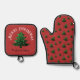 Sparkly Merry Christmas tree Custom name Oven Mitt & Pot Holder Set