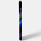 Sparkly metal neon aqua purple galaxy chevron Monogram iPhone 15 Case. Personalise with your initial and name. Abstract sparkly metallic black and blue galaxy stripes lines digital design. No actual sparkles!