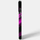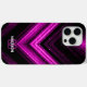 Sparkly metal neon hot pink galaxy chevron Monogram iPhone 15 Case. Personalise with your initial and name. Abstract sparkly metallic black and pink galaxy stripes lines digital design. No actual sparkles!