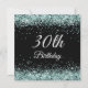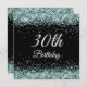 Sparkly Pale Turquoise Glitter Black 30th Birthday Invitation