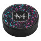 Sparkly pink blue mosaic glitter sparkle Monogram Hockey Puck
