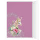 Here's a beautiful birthday card that anyone who loves unicorns will adore! The front features a pretty white unicorn resting on golden orange and lavender clouds, with a colorful swirled universe as the background. Over all is an overlay of gold and silver stars, and your custom text is at the bottom right corner. The inside of the card has two more text fields for you to customize, and another image of the unicorn with flowers.