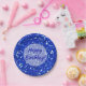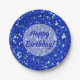 Sparkly Royal Blue Glitter Look Happy Birthday Paper Plate