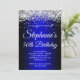 Sparkly Silver Glitter Black Medium Blue Gradient Invitation