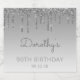 These chic 90th birthday sparkling wine bottle labels feature a sparkly silver faux glitter drip border and silver ombre background. Personalise them with her name in grey handwriting script, with her birthday and date below in sans serif font.