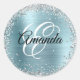 Sparkly Silver Glitter Pale Blue Foil Monogram Classic Round Sticker