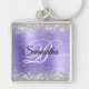 Sparkly Silver Glitter Periwinkle Foil Monogram Key Ring