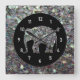Sparkly silver mosaic glitter Elephant Square Wall Clock