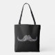 Sparkly silver mosaic Moustache on Black Tote Bag