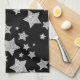 Sparkly Silver Stars Christmas holidays pattern black kitchen towel. Beautiful silver grey glitter sparkles stars pattern on customisable background. Photo of sparkles glitter!