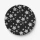 Sparkly Silver Stars Christmas pattern black Paper Plate