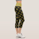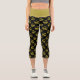 Sparkly Smile face Gold sparkles black pattern Capri Leggings