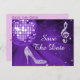 Elegant, glamourous 18th Birthday / Eighteenth Birthday save the date postcards. Trendy glitz and glamour Save the dates for your 18th / Eighteenth birthday party celebrations. Beautiful, dazzling purple/lilac/lavender sparkles diamonds bling jewels musical note image, funky purple/lilac/lavender retro disco mirror ball and purple/lilac/lavender glittery stiletto high heel fashion shoe image on a chic lilac background. A cute, classy, fashionable, stylish, pretty save the date postcard for women's birthday parties. Women will love this cool, fun, funky, girly design for their glamourous music and dancing parties. If you need any assistance in customising your product please contact me through my store and i will be very happy to help.