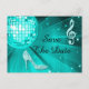 Elegant, glamourous 60th Birthday / Sixtieth Birthday save the date postcards. Trendy glitz and glamour Save the dates for your 60th / Sixty birthday party celebrations. Beautiful, dazzling teal sparkles diamonds bling jewels musical note image, funky teal retro disco mirror ball and teal glittery stiletto high heel fashion shoe image on a chic teal background. A cute, classy, fashionable, stylish, pretty save the date postcard for women's birthday parties. Women will love this cool, fun, funky, girly design for their glamourous music and dancing parties. If you need any assistance in customising your product please contact me through my store and i will be very happy to help.