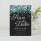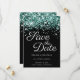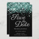 Sparkly Teal Glitter Black Elegant Calligraphy Save The Date