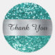 Sparkly Teal Glitter Silver Shimmer Foil Classic Round Sticker