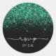 Sparkly Teal Green Glitter Black RSVP Classic Round Sticker