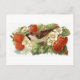 Sparrow & Red Strawberries - Vintage Illustration Postcard