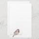 A watercolor and ink painting of a male house sparrow on a wire. Designed to go with the matching envelopes.