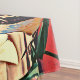I am very pleased with this purchase. The quality is good, it is heavy and the image decorating it is brilliant and very eye-catching. When I first laid eyes on this tablecloth, still folded and in the transparent covering, it brought a smile to my face and I knew right away it was a good choice. A few days later my wife replaced our old tablecloth with this little gem and was quite satisfied. She noted that it is thick and fits the table very well with just enough hang over (although our dining table is extended by a traditional leaf which we keep in place even if we are not having guests over) and stays put instead of blowing all over the place. The image decorating this tablecloth is brilliant and very eye-catching. It looks even better than it appeared online.