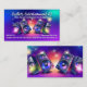 Booming speakers and twinkles of light in blue purple and turquoise. Vibrant colours and modern style. Promote your music experience with this amazing Speakers and sparkle lights Dj Party Music Disc Jockey Deejay DJs Business Card. Perfect for the music enthusiast who plays for Kids parties, childrens fun events, family or community festivals, silent disco events or any occasion. Fun customisable business card, perfect for your special party events, 80s disco dance party, dj business or nightclub party.