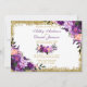 Watercolor Purple Ultra Violet Floral Gold Glitter Wedding Invitation Card - Purple Script - Purple Back