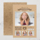 A 4-photo invitation perfect for any age or gender. The tan background features a ribbon banner for the name and a heart. The back of the card has a lovely two-tone abstract pattern.