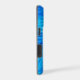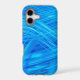 Light blue light crosses through a darker blue background, crossing other light paths to make a unique and pretty abstract pattern on this phone case.