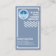 A blue cover is encapsulated by a white rectangle border that has a water wave motif near the upper corner. Here lies your business name alongside a "water wave life buoy" logo you can use. Towards the base of the card you have your prestigious name and the contact details.