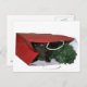 Black smoke kitty inside a red Christmas bag photo card. The cat could be someone's Christmas gift or just into someone's Christmas gift photo Christmas postcard