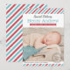 Announce your baby boy in style with these vintage inspired photo birth announcement cards features a special delivery airmail theme, classic red, white & aqua / turquoise blue diagonal striped border, and charcoal grey round stamp design.
