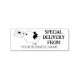 This "Special Delivery From" rubber stamp features a packaging message with a bird and custom business name.