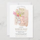 The invitation features a soft, dreamy pastel palette, creating a sense of warmth and anticipation. In the centre, a charming illustration steals the spotlight—a tiny forest mouse, adorned with delicate watercolor strokes, carries a dainty bucket filled with a bouquet of enchanting flowers that are a sudden pop of colour in the centre of the invite. The font style is simple in hues of brown and black. Create a whimsical magical feeling for your celebration.