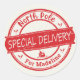 North Pole Special Delivery sticker with sleigh and holly that allows you to add a name for a special touch on holiday packages!