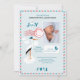 A photo birth announcement resembling an air mail envelope features a stork, baby footprints, a post mark and in place of a postage stamp is a window for your baby's photo. The card is easy to customise with your wording, font, font colour and choice of six paper types.