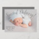Special Delivery Gender neutral grey baby photo birth announcement for boy or girl. Such a cute sentiment. Let everyone know your new bouncing baby has arrived.
