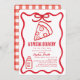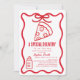This cute "a special delivery is on the way" girl baby shower invitation features hand-drawn illustrations of a bow, slice of pizza and baby bottle surrounded by a red wavy frame. The reverse side features a white background with a red gingham plaid. Personalize it for your needs. You can find matching products at my store.