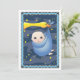 A sweet little baby pokes his head out from the blue bundle carried by the stork as they fly through the starry night. This original digital illustration is reminiscent of an old Mother Goose book I loved as a child, and is sure to make your guests smile while it lets them know that the bundle of joy is a boy!