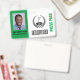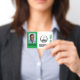 The Special Golf Event Name Badge is tailor-made for your golf occasion, reflecting the exclusivity and uniqueness of your event. Crafted with attention to detail, it embodies the essence of your gathering, whether it's a corporate summit, a charity gala, or a prestigious awards ceremony. It sets the tone for an extraordinary experience that will be remembered long after the event concludes. Bold and bright green rectangles highlight the photo i.d. customisation on the front with special event detail customised on the back. A golf flag surrounded by laurel leaves indicates the golf theme.
