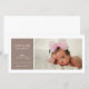 Introduce your little one to the world with this beautiful modern birth announcement by katkadoodle.com. Lovely typography in pink and white against a suede brown background, set on white card stock. Simply elegant styling features a portrait photo of your sweet baby girl.
