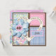 This pretty quilted invitation allows you to put in the age of the birthday girl. 16, 30, 50, the card is suitable for any age. Scrapbooked quilt squares with a heart over top, this birthday card is cheery and pretty. A lovely mix of pink, blue, cream and brown makes this personalized birthday party invitation a unique and special addition to your party planning.