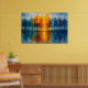 Immerse yourself in the radiant serenity of "Spectrum Grove: Colorful Trees Reflected in Water", a vibrant abstract landscape painting that captures nature’s harmony through bold color transitions and mirrored reflections. A row of trees bursts into a gradient of deep blues, lush greens, fiery oranges, and soft purples, all mirrored in a tranquil body of water below. The glowing central light draws the eye, while scattered birds and textured skies evoke peaceful movement. Perfect for lovers of colorful forest art, nature-inspired wall decor, and modern impressionist landscapes, this piece adds warmth and wonder to any space.